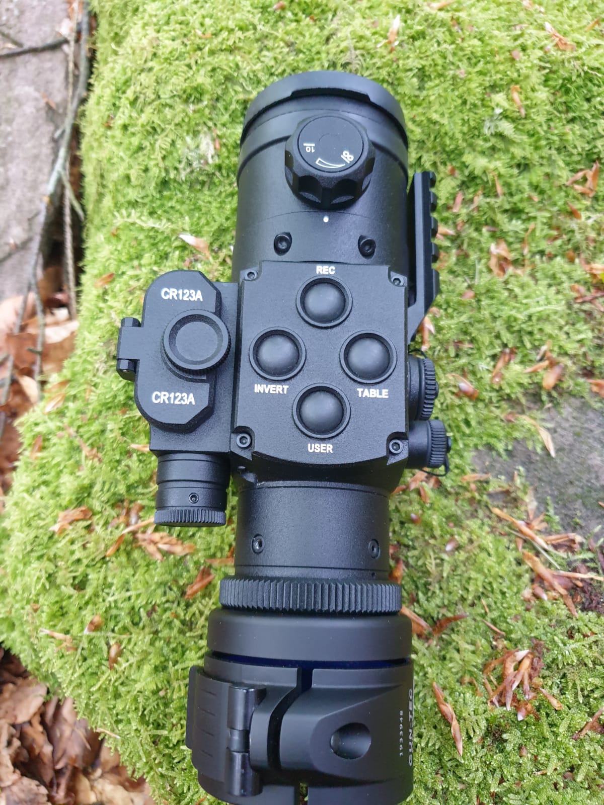 Die Schärfeneinstellung erfolgt auch beim SL wieder innenliegend über einen Drehknopf auf der Oberseite des Gerätes, dies garantiert wie schon beim Vorgängermodell höchste Präzision und Wiederholgenauigkeit. Das Menü kann über einen Dreh-/Druckknopf schnell und einfach bedient werden, die Sprache ist natürlich auch auf Deutsch einstellbar. So wird das Gerät schnell zum täglichen Begleiter. Eine Rotte Schwarzwild konnten wir mit dem TFA SL auf über 1.500 Meter schnell ausmachen.