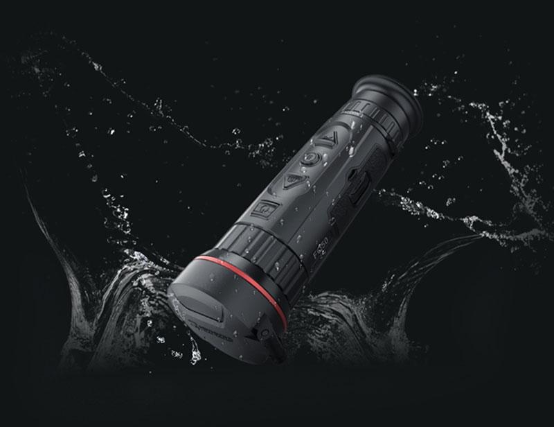 Das robuste Magnesium-Gehäusematerial verhindert Korrosion durch Schweiß, Regen, Nebel und Tau. Die Objektivlinse verwendet die SDLC-Beschichtungstechnologie, um Kratzer wirksam zu verhindern. Das Gerät ist nach IP67 wasserdicht und kann bis zu 30 Minuten lang in bis zu 1 Meter tiefes Wasser getaucht werden — perfekt für den ständigen und oft harten Einsatz.