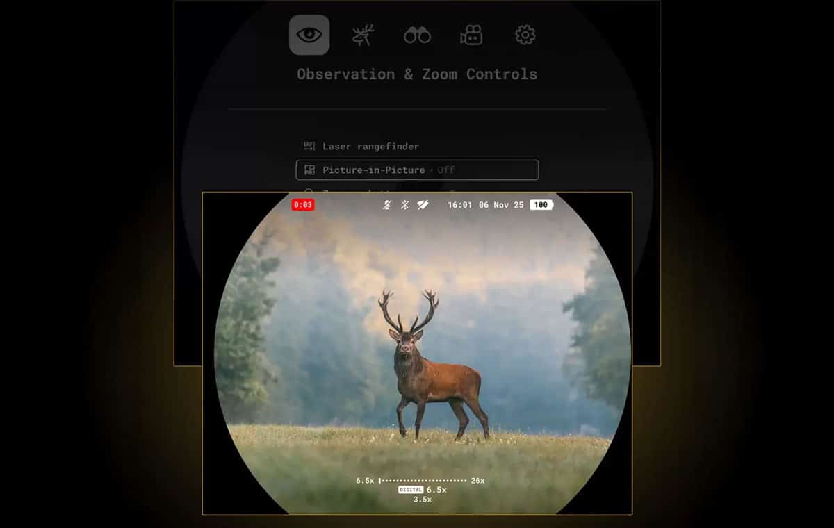 Für mich persönlich stellt die PIP-Funktion neben den anderen tollen Features den größten Mehrwert der Symbion Reihe da. Mit den Bild-im-Bild-Modi können Sie das Stück Wild in einem kleinen Bildausschnitt als Wärmebild sehen, darunter auf dem großen Bildschirm in Nachtsicht. So hat man jede Situation immer perfekt im Griff!